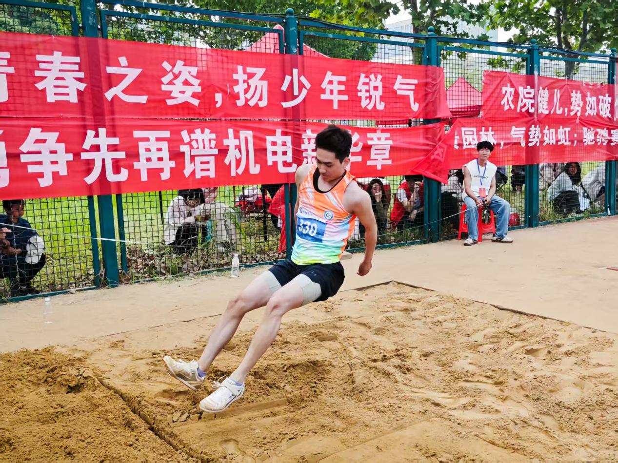 田赛项目同样捷报频传。曹俊豪同学在男子标枪比赛中沉着应战,凭借稳定的技术发挥夺得第二名,展现了良好的力量与技巧结合。杨天翔同学在男子跳高比赛中获得第七名,李向阳同学在男子跳远项目中获得第八名。每一位站上赛场的同学,都是动医精神的传承者——他们不惧强手,敢于亮剑,用实际行动诠释了“更高、更快、更强、更团结”的体育追求。